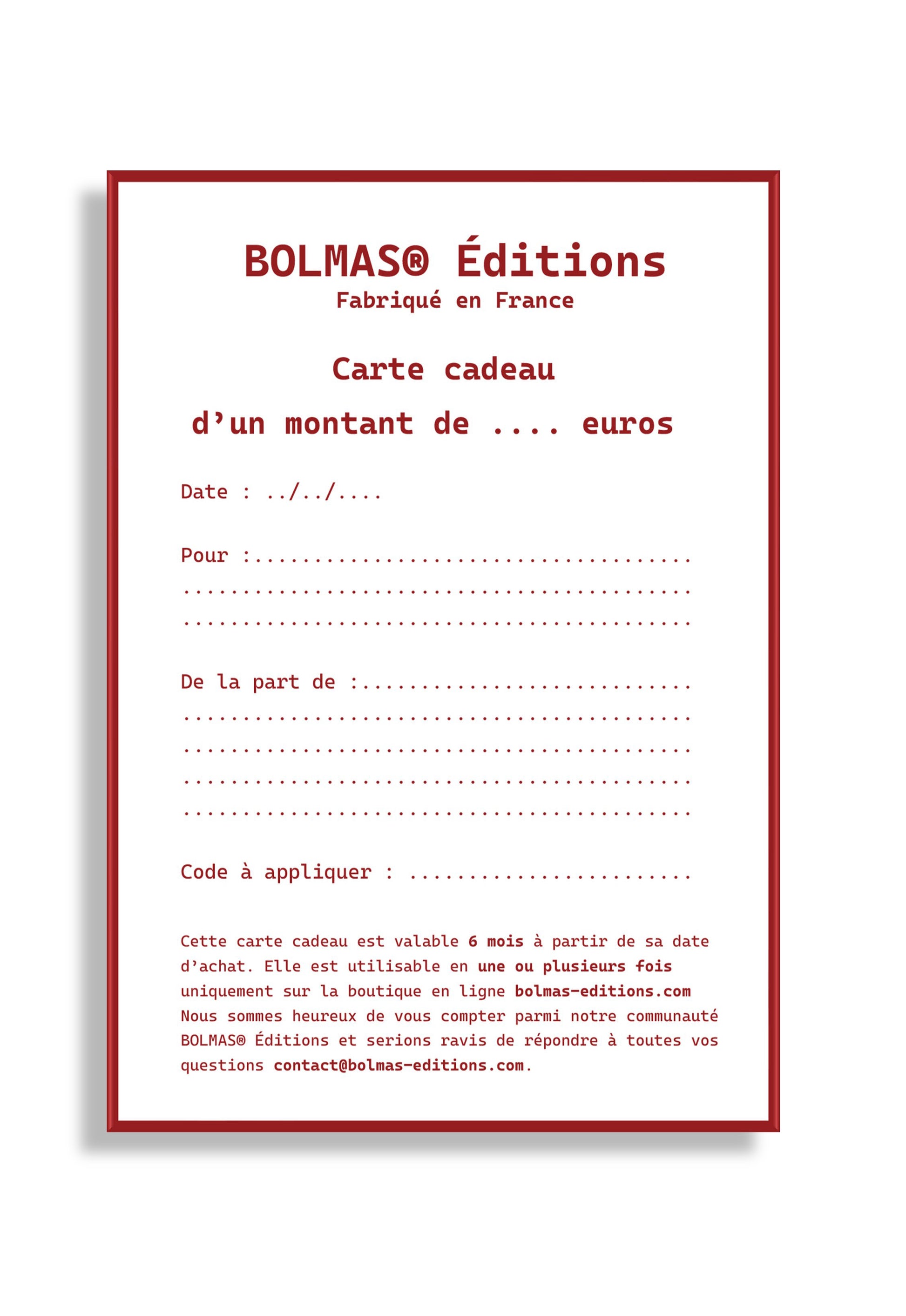 N. 17 - Support carte cadeau BOLMAS® Éditions version papier